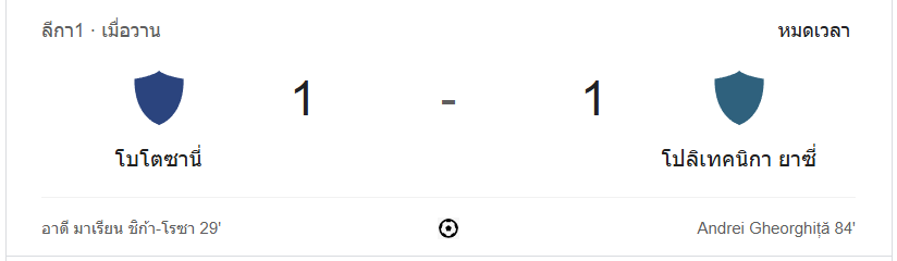 ผลบอลสด โรมาเนีย ลีกา1 2024 ระหว่าง ทีม โบโตซานี่ vs โปลิเทคนิก้า อายซี่ วันนี้ 25/11/67 ดูบอลย้อนหลัง คลิปไฮไลท์ ดูบอลโรมาเนีย ลีกา1 2024