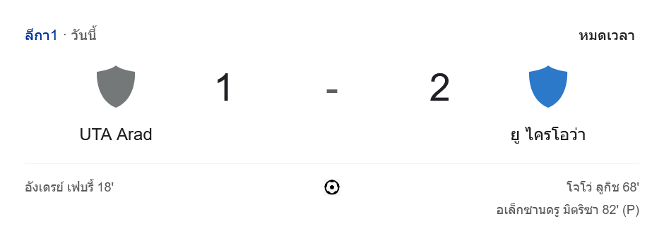 บ้านผลบอล สรุปผล ยูทีเอ อารัด พ่ายแพ้คาบ้าน! ซีเอส คราอิโอว่า ฮึดพลิกเกมคว้าชัยในศึกโรมาเนีย ลีกา1 2024