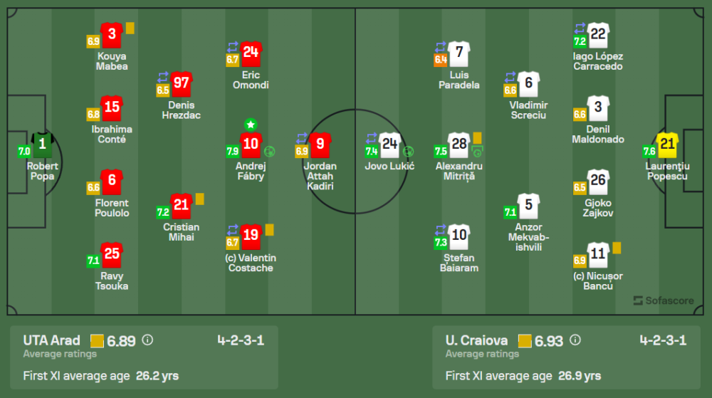 ทั้งสองทีมใช้แผน 4-2-3-1 แต่ความแตกต่างชัดเจนในเรื่องการครองบอล ยูทีเอ อารัด เน้นการตั้งรับแล้วโต้กลับ แต่ขาดความแม่นยำในแดนสุดท้าย ขณะที่ ซีเอส คราอิโอว่า มีเกมรุกที่หลากหลายโดยเฉพาะจากการประสานงานระหว่าง มิตริต้า และ ลูกิช ที่สามารถสร้างโอกาสและจบสกอร์ได้อย่างเด็ดขาด การปรับแผนหลังครึ่งแรกของทีมเยือนเป็นจุดเปลี่ยนสำคัญ