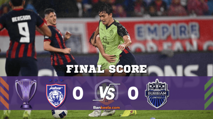 บ้านกีฬา รายงานผลบอลสดการแข่งขันในศึกเอเอฟซี แชมเปี้ยนส์ ลีก 2024 นัดสำคัญระหว่าง ยะโฮร์ ดารุล ทักซิม และ บุรีรัมย์ ยูไนเต็ด จบลงด้วยผลเสมอ 0-0 เกมนี้เต็มไปด้วยความเข้มข้นและจังหวะที่น่าตื่นเต้น แต่ทั้งสองทีมไม่สามารถทำประตูกันได้