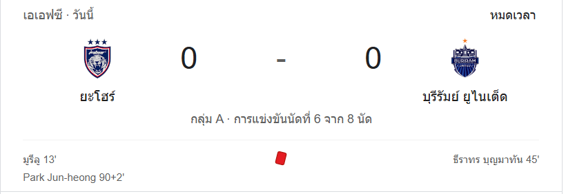 นาทีที่ 90+5: ผู้ตัดสินเป่าหมดเวลา ยะโฮร์ ดารุล ทักซิม เสมอกับ บุรีรัมย์ ยูไนเต็ด 0-0