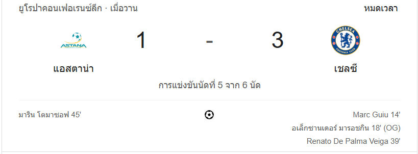 จบครึ่งแรก: เชลซีนำอัสตานา 3-1