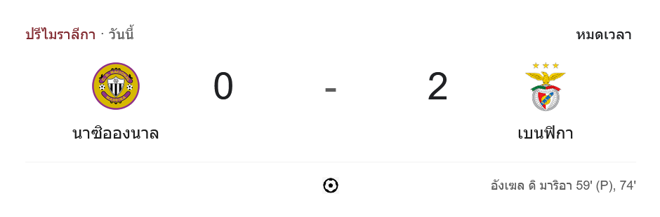 - ⚽ นาทีที่ 59: อังเคล ดิ มาเรีย ยิงจุดโทษให้เบนฟิก้าขึ้นนำ 1-0