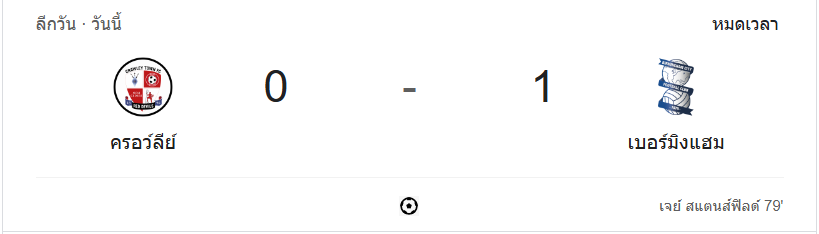 จบเกม: คราวเลย์ ทาวน์ 0 – 1 เบอร์มิงแฮม ซิตี้