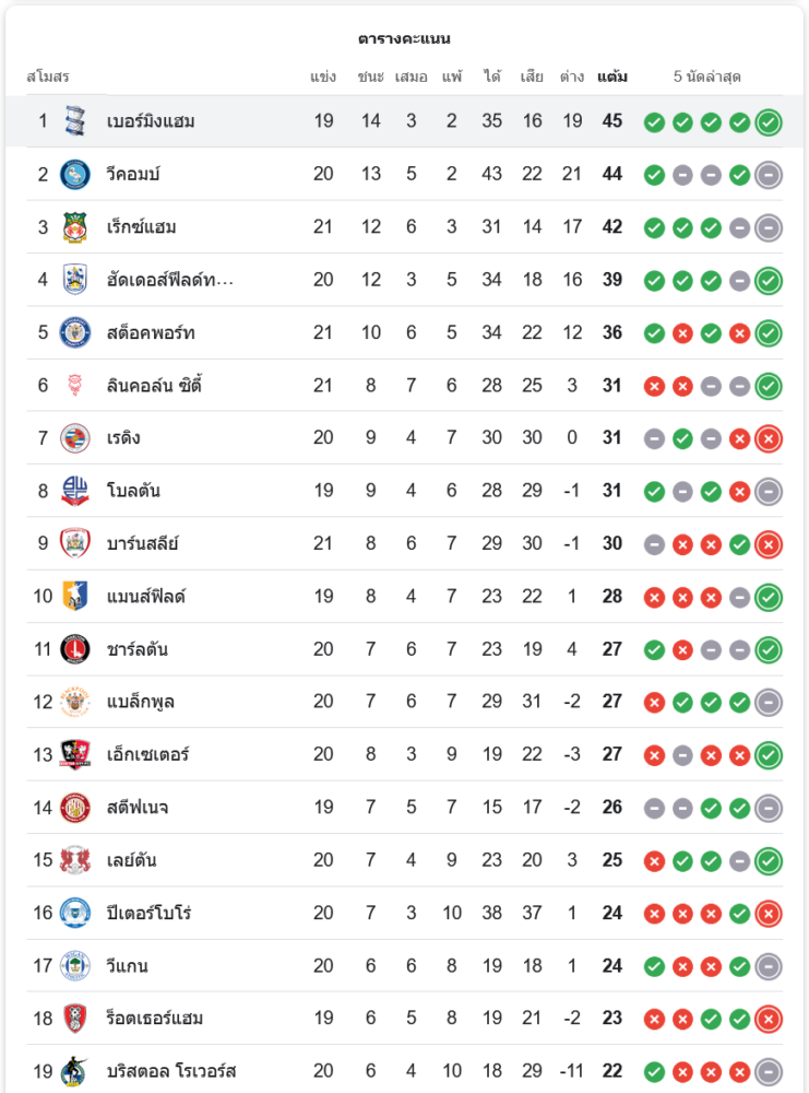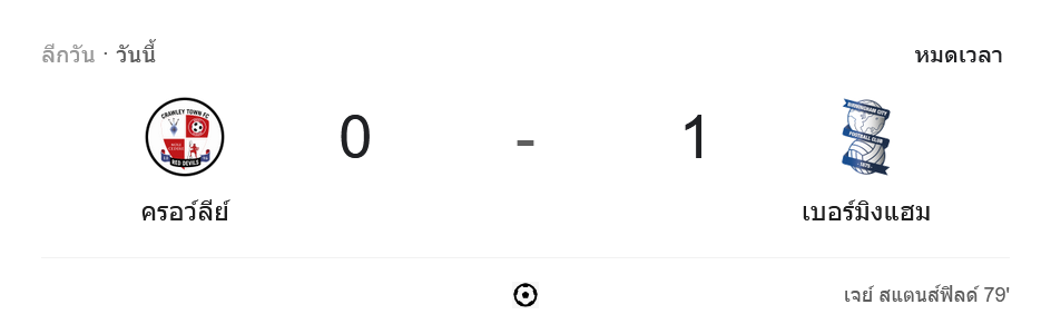จาก : ผลบอลสด ลีกวัน อังกฤษ 2024 ระหว่าง คราวเลย์ ทาวน์ 0-1 เบอร์มิงแฮม ซิตี้ วันนี้ 24/12/67 – บ้านกีฬา