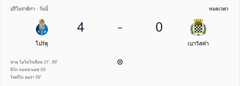 นาทีที่ 90+4: จบเกม ปอร์โต้เอาชนะเบาวิสต้า 4-0 คว้าชัยชนะอย่างยอดเยี่ยมในเกมนี้