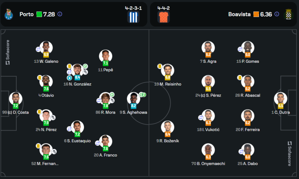 • ตัวสำรอง: ดานนี่ โลเดอร์ (เปลี่ยนแทน โรดริโก้ มอร่า 80’), กอนซาโล่ บอร์เกส (แทน อลัน ฟรังโก 80’)