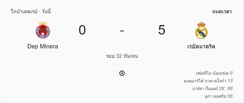 จบเกม: เรอัล มาดริดเอาชนะเดปอร์ติวา มีเนอร่าไปได้ 5-0 ผ่านเข้าสู่รอบต่อไปของโกปาเดลเรย์อย่างสวยงาม