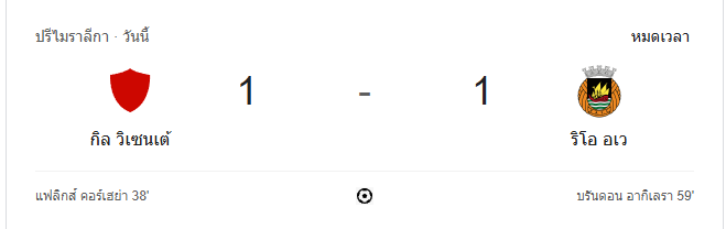 จบครึ่งแรก: กิล วิเซนเต้ 1-0 ริโอ อาฟ