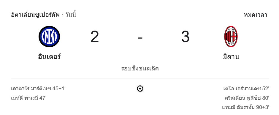 จาก : ผลบอลสด ซูเปอร์ คัพ อิตาลี 2024 ระหว่าง อินเตอร์ มิลาน 2-3 เอซี มิลาน วันนี้ 7/1/68 – บ้านกีฬา