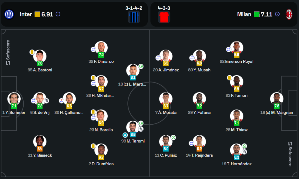 เมห์ดี้ ทาเรมี ของอินเตอร์ มิลาน ที่ทำ 1 ประตู และแอสซิสต์ให้เพื่อนร่วมทีมอีก 1 ครั้ง ด้วยคะแนนสูงสุด 8.6