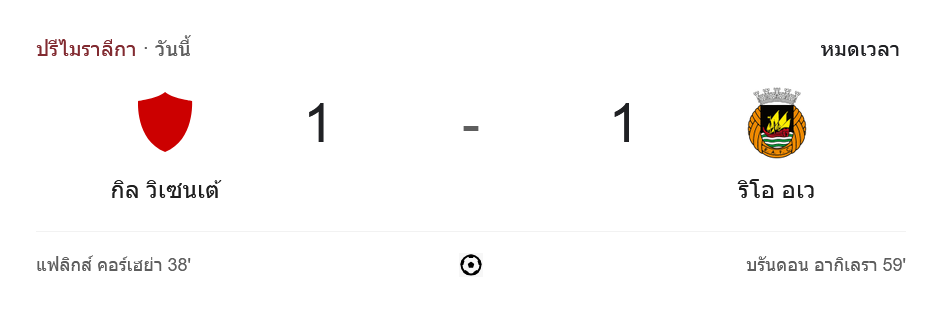 จาก : ผลบอลสด ปรีไมราลีกา 2024 ระหว่าง กิล วิเซนเต้ 1-1 ริโอ อาฟ วันนี้ 7/1/68 – บ้านกีฬา