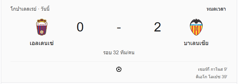 นาทีที่ 94: ผู้ตัดสินเป่านกหวีดจบเกม บาเลนเซียคว้าชัยชนะ 2-0 ผ่านเข้าสู่รอบต่อไปของโกปาเดลเรย์