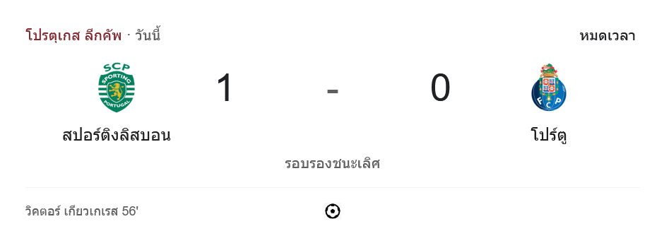 จาก : ผลบอลสด โปรตุเกส ลีกคัพ 2024 ระหว่าง สปอร์ติ้ง ลิสบอน 1-0 ปอร์โต้ วันนี้ 8/1/68 – บ้านกีฬา