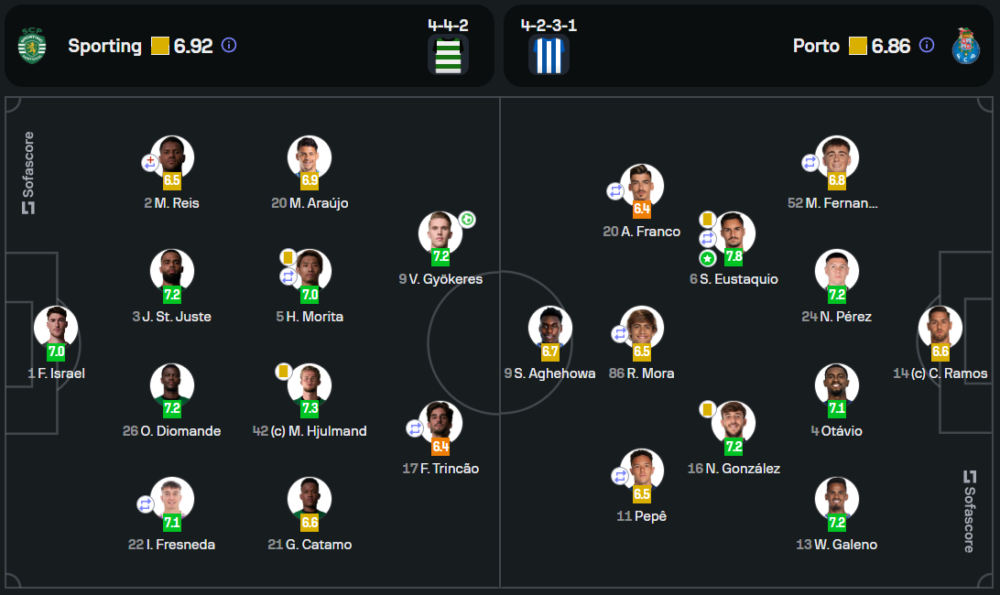 เกมเริ่มต้นด้วยการครองบอลที่สูสีระหว่างทั้งสองทีม ปอร์โต้มีเปอร์เซ็นต์การครองบอลมากกว่าที่ 52% แต่สปอร์ติ้ง ลิสบอนใช้ความเหนียวแน่นในแนวรับต้านทานการบุกอย่างต่อเนื่อง ปอร์โต้มีจังหวะยิงถึง 11 ครั้งในเกมนี้ แต่การจบสกอร์ยังไม่เด็ดขาด ขณะที่ลิสบอนมีโอกาสยิงเพียง 7 ครั้ง แต่เฉียบคมมากกว่า
