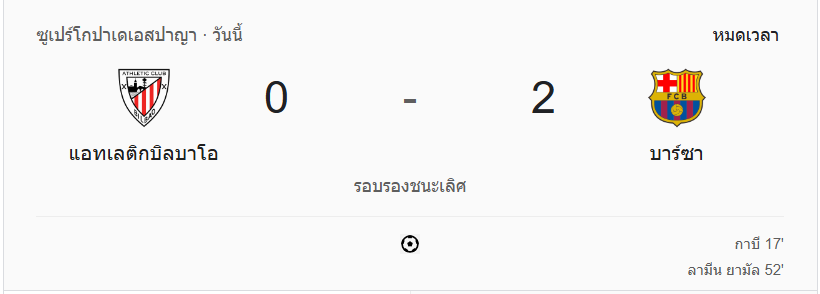 ผลบอลสด แปนิชซูเปอร์คัพ 2024 ระหว่าง แอธเลติก บิลเบา 0-2 บาร์เซโลน่า วันนี้ 9/1/68