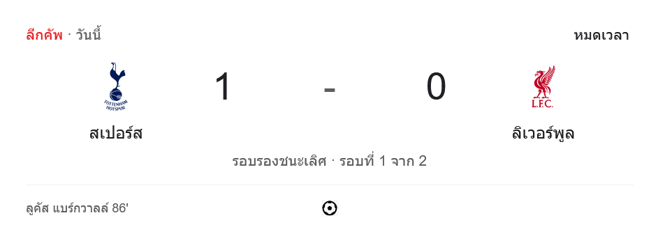 จาก : ผลบอลสด อีเอฟแอลคัพ 2024 ระหว่าง ท็อตแน่ม ฮ็อทสเปอร์ 1-0 ลิเวอร์พูล วันนี้ 9/1/68 – บ้านกีฬา