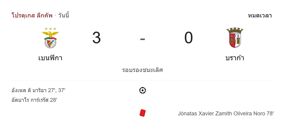 จาก : ผลบอลสด โปรตุเกส ลีกคัพ 2024 ระหว่าง เบนฟิก้า 3-0 สปอร์ติ้ง บราก้า วันนี้ 9/1/68 – บ้านกีฬา
