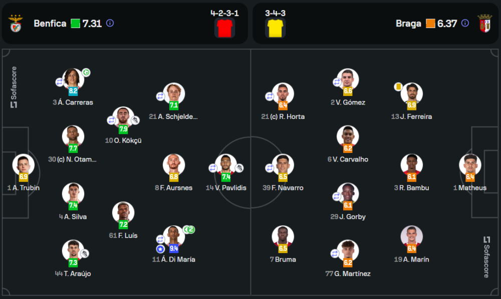 เบนฟิก้าเล่นด้วยระบบ 4-2-3-1 โดยเน้นการครองบอลและเกมรุกที่หลากหลาย การประสานงานระหว่าง ดิ มาเรีย และผู้เล่นในแดนหน้าสร้างความแตกต่างชัดเจน ส่วนสปอร์ติ้ง บราก้าพยายามใช้แผน 3-4-3 แต่เจอกับแนวรับของเบนฟิก้าที่แข็งแกร่งจนไม่สามารถหาจังหวะจบสกอร์ได้ การจัดการเกมของ เบนฟิก้า สะท้อนถึงความแม่นยำในแผนการเล่นและความพร้อมในทุกจังหวะ