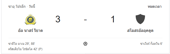 นาทีที่ 96: จบเกม อัล นาสร์ชนะอัล อุคดูดด้วยสกอร์ 3-1