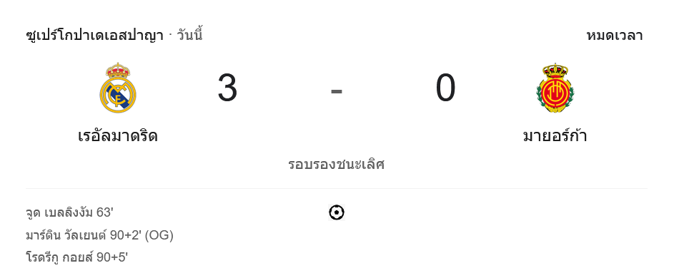 จาก : ผลบอลสด สแปนิชซูเปอร์คัพ 2024 ระหว่าง เรอัล มาดริด 3-0 มายอร์ก้า วันนี้ 10/1/68 – บ้านกีฬา