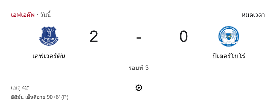 การแข่งขันฟุตบอล เอฟเอคัพ 2024 รอบที่ 3 ที่สนามเหย้าของเอฟเวอร์ตันจบลงด้วยชัยชนะของเจ้าบ้านที่เหนือชั้นกว่า ปีเตอร์โบโร่ 2-0 การแข่งขันนี้เต็มไปด้วยความเข้มข้น และจังหวะเกมที่แสดงถึงความเป็นมืออาชีพของเอฟเวอร์ตัน โดย ผลบอลสด ระบุชัดเจนถึงความได้เปรียบและความคมในการเล่นของทีมเจ้าบ้าน