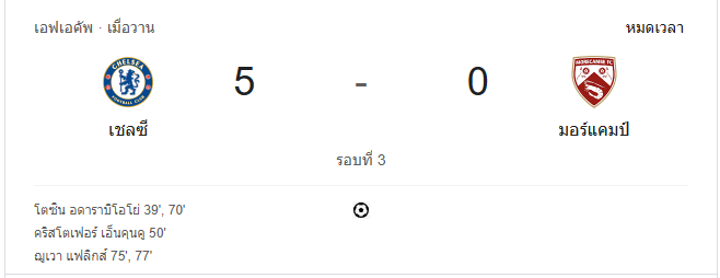 นาทีที่ 91: จบเกม เชลซีเอาชนะมอร์แคมบ์ไปด้วยสกอร์ 5-0
