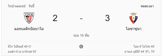 ผลบอลสด โกปาเดลเรย์ 2024 ระหว่าง ทีม แอธเลติก บิลเบา vs โอซาซูน่า 17/1/68 ดูบอลย้อนหลัง คลิปไฮไลท์ ดูบอลโกปาเดลเรย์ 2024
