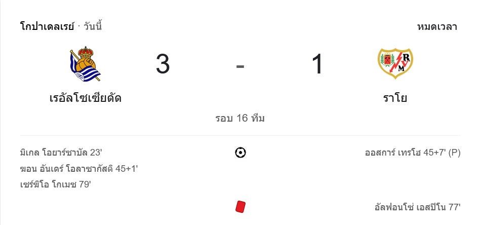 จาก : ผลบอลสด โกปาเดลเรย์ 2024 ระหว่าง เรอัล โซเซียดาด 3-1 ราโย่ บาเยกาโน่ วันนี้ 17/1/68 – บ้านกีฬา
