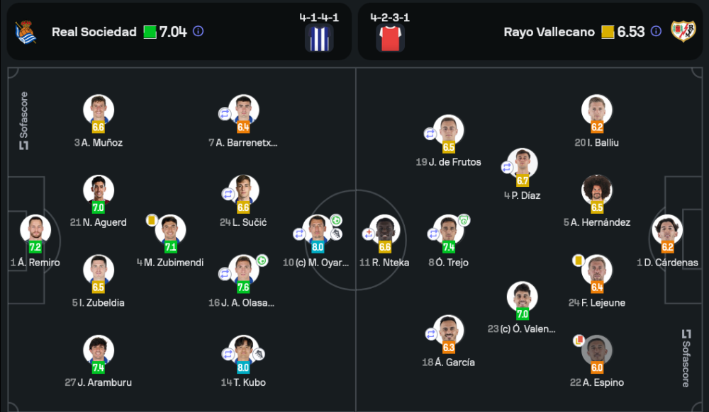 กองกลางตัวรุก: ทาเคฟุสะ คุโบะ, ลอฟโร่ ซูซิช, โฆน อันเดร์ โอลาซากาสติ, อันเดร์ บาร์เรเนเชีย