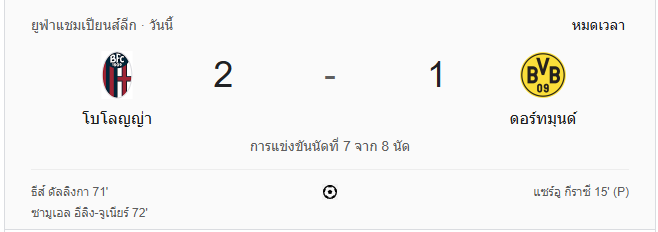 นาทีที่ 96: กรรมการเป่านกหวีดจบเกม โบโลญญ่าชนะดอร์ทมุนด์ 2-1 ในเกมที่เต็มไปด้วยความเข้มข้น