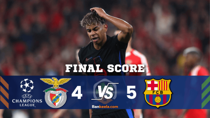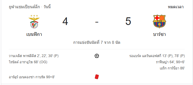 นาทีที่ 100: กรรมการเป่านกหวีดจบเกม บาร์เซโลน่าชนะเบนฟิก้า 5-4 ในเกมที่เต็มไปด้วยความตื่นเต้นและลุ้นระทึกจนวินาทีสุดท้าย
