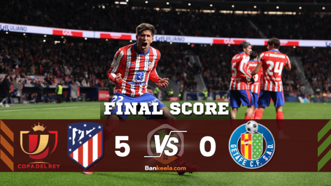 แอตเลติโก มาดริด แสดงให้เห็นถึงความเฉียบคมและพลังเกมรุกที่ดุดัน โดย จูเลียโน่ ซิเมโอเน่ เปิดหัวด้วยสองประตู ก่อนที่ ซามูเอล ลิโน่, อังเคล คอร์เรอา และ อเล็กซานเดอร์ ซอร์ลอธ จะบวกเพิ่มอีกคนละลูก ทำให้พวกเขาเข้าสู่รอบรองชนะเลิศ โกปาเดลเรย์ ได้แบบเหนือชั้น ขณะที่ เคตาเฟ ต้องกลับไปปรับแผนใหม่ หลังพ่ายเละในการเจอกับทีมใหญ่