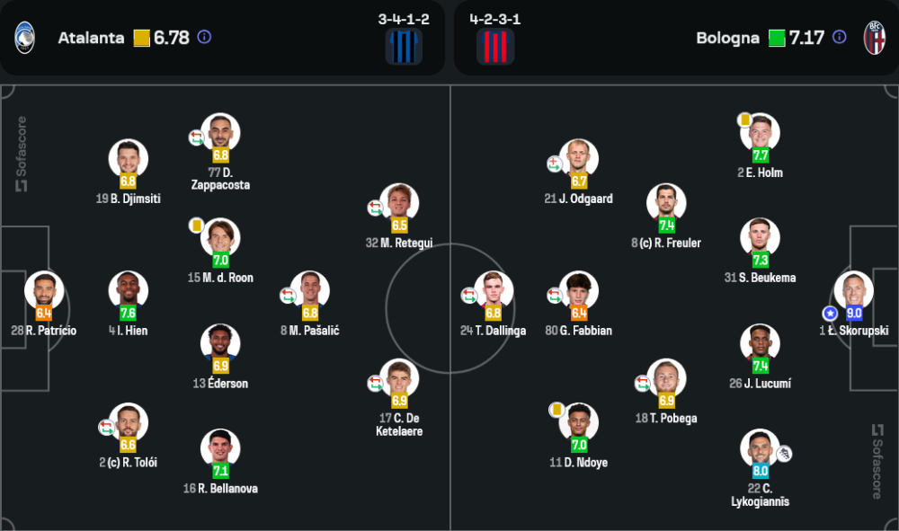 - อตาลันต้า: อิซัค เฮียน (7.6), มาร์โก เบรสเชียนินี (7.2), ราอูล เบลลาโนว่า (7.1)