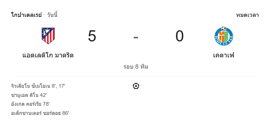 จาก : ผลบอลสด โกปาเดลเรย์ 2024 ระหว่าง แอตเลติโก มาดริด 5-0 เคตาเฟ วันนี้ 5/2/68 – บ้านกีฬา