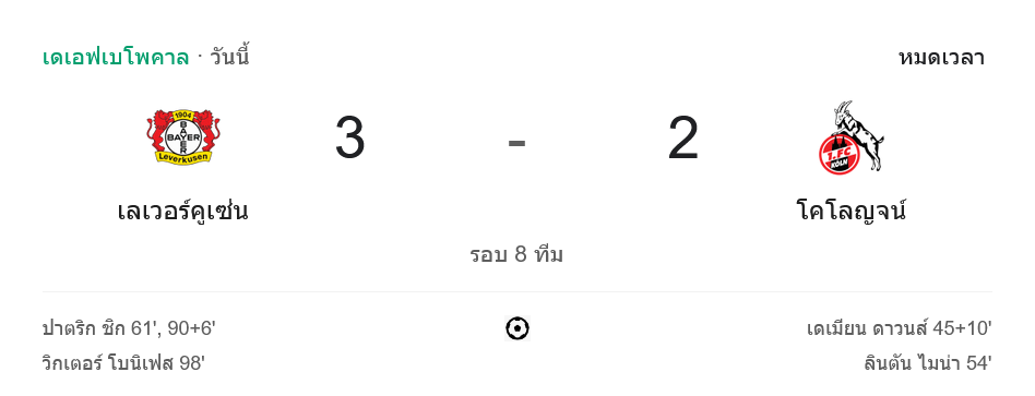 จาก : ผลบอลสด เดเอฟเบโพคาล 2024 ระหว่าง บเออร์ เลเวอร์คูเซิน 3-2 โคโลญจน์ วันนี้ 6/2/68 – บ้านกีฬา