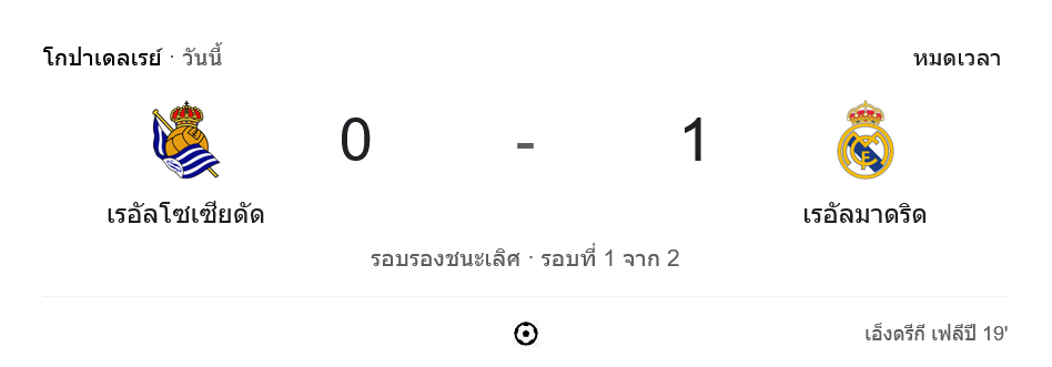 จาก : ผลบอลสด โกปาเดลเรย์ 2024 ระหว่าง เรอัล โซเซียดาด 0-1 เรอัล มาดริด วันนี้ 27/2/68 – บ้านกีฬา