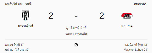 รายงานการแข่งขัน: เฮราเคิ่ลส์ อัลเมโล่ 2-2 อาแซด อัลค์มาร์ (จุดโทษ 3-4)