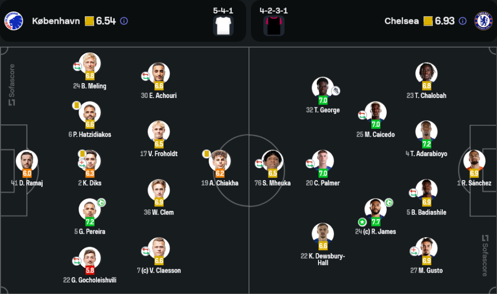 เชลซี ใช้ระบบ 4-2-3-1 โดยเน้นการครองบอลและสร้างสรรค์เกมรุกจากการเคลื่อนที่ของ รีซ เจมส์ และ เอนโซ เฟร์นานเดซ ขณะที่ โคเปนเฮเกน ใช้แผน 5-4-1 เน้นการตั้งรับและเล่นโต้กลับอย่างรวดเร็ว แม้โคเปนเฮเกนจะสามารถยิงประตูตีตื้นได้ แต่การขาดความเฉียบคมในการโจมตีทำให้ไม่สามารถพลิกเกมกลับมาได้