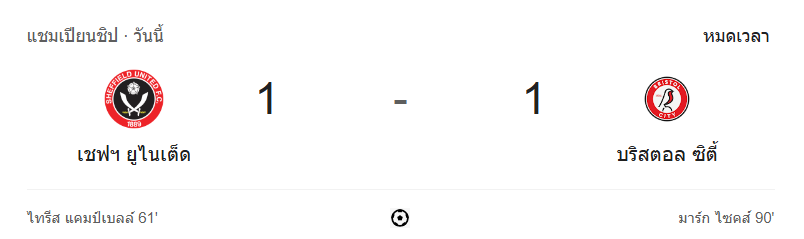 - นาทีที่ 99 กรรมการเป่าหมดเวลา เชฟฟิลด์ ยูไนเต็ด เสมอ บริสตอล ซิตี้ 1-1!