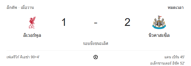 - นาทีที่ 102 กรรมการเป่าหมดเวลา ลิเวอร์พูล แพ้ นิวคาสเซิล ยูไนเต็ด 1-2!
