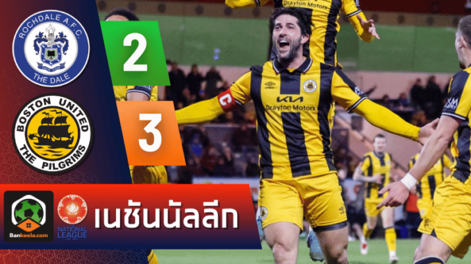 บ้านผลบอล สรุปหลังเกม บอสตัน ยูไนเต็ด โชว์เกมรุกบุกเชือด โรชเดล 3-2! ดราม่าท้ายเกม เนชันนัลลีก