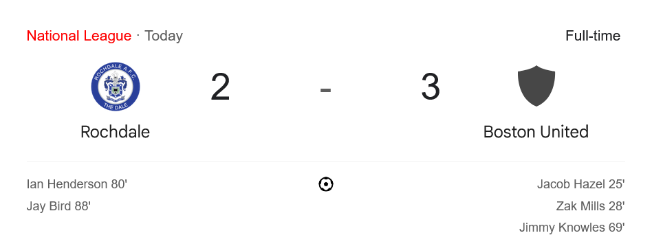 ชัยชนะเกมนี้ช่วยให้ บอสตัน ยูไนเต็ด เก็บเพิ่มเป็น 37 คะแนน ไล่จี้โซนปลอดภัย และเพิ่มโอกาสหนีตกชั้น ขณะที่ โรชเดล พลาดโอกาสขยับอันดับ ยังคงอยู่ที่ 7 มี 56 คะแนน ต้องเร่งฟอร์มเพื่อรักษาพื้นที่เพลย์ออฟ