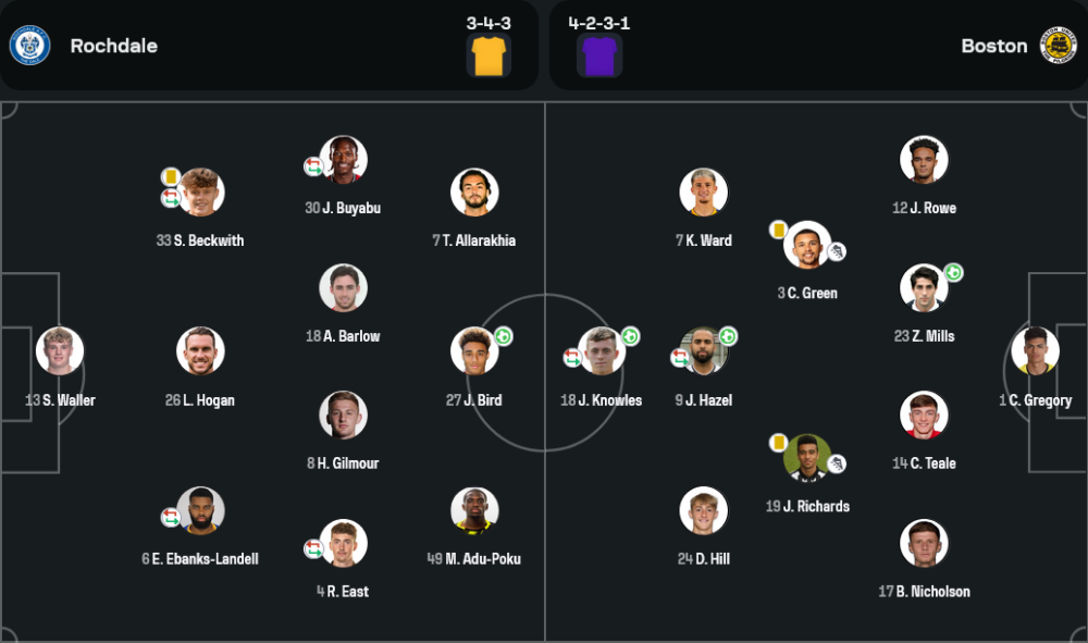 บอสตัน ยูไนเต็ด ใช้แผน 4-2-3-1 และเล่นด้วยเกมรับที่แน่นหนา และใช้บอลไดเร็กต์สวนกลับเร็ว ซึ่งได้ผลเป็นอย่างมาก โดยเฉพาะเกมริมเส้นที่สร้างปัญหาให้ โรชเดล บ้านกีฬา วิเคราะห์บอล แล้วเห็นชัดว่า บอสตัน อาศัยเกมโต้กลับอย่างมีประสิทธิภาพและเฉียบคมกว่า