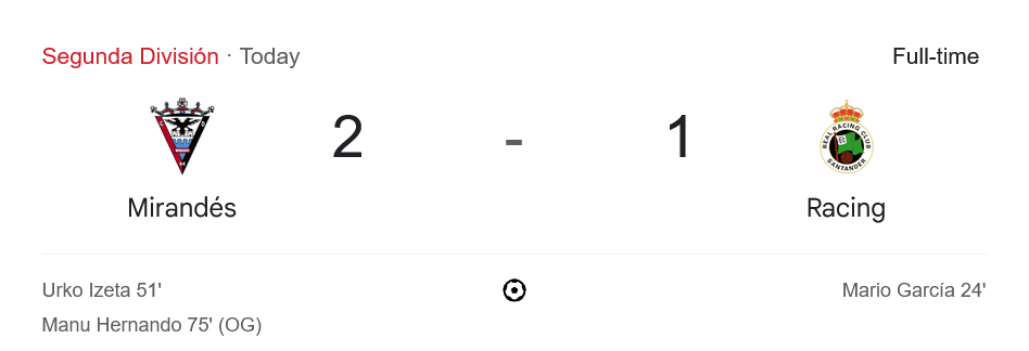 บ้านผลบอล สรุปหลังเกม มิรานเดส แซงดับราซิ่ง ซานตานเดร์ 2-1 คว้าชัยสุดระทึก ยึดจ่าฝูงเซกุนด้าแน่น!