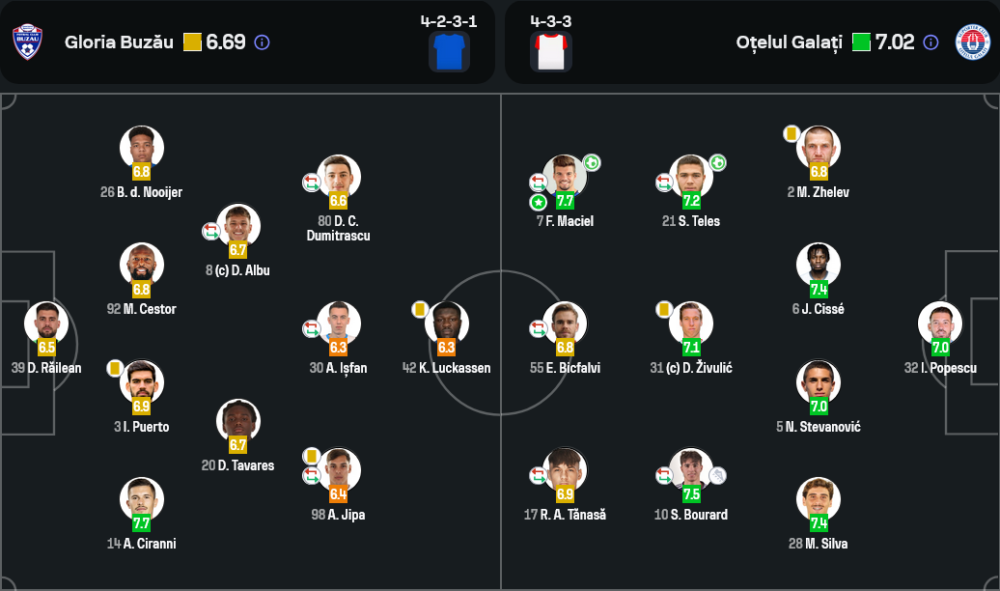 กองกลางตัวรับ: D. Albu (6.7), A. Ișfan (6.3)