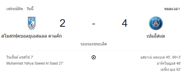 รายงานสด ผลบอลสด ยูเอสแอล ดาแค๊ก 2-4 ปารีส แซงต์-แชร์กแมง