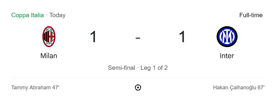 สำหรับโปรแกรมถัดไปใน ตารางบอล ของทั้งสองทีมจากเมืองมิลานที่เสมอกันในศึก โกปปาอีตาเลีย นัดแรก เอซี มิลาน จะกลับไปลงแข่งขันใน เซเรียอา ด้วยการเปิดบ้านพบกับ ฟิออเรนติน่า ในวันที่ 6 เมษายน 2025 เวลา 01:45 น. และต่อด้วยการไปเยือน อูดิเนเซ่ ในวันที่ 12 เมษายน 2025 เวลา 01:45 น.