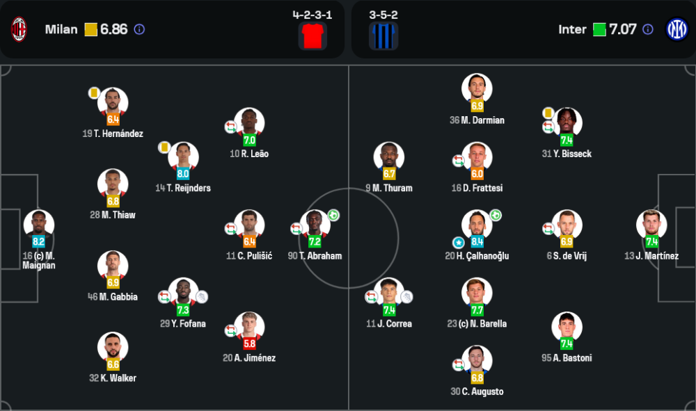ฮาคาน ชัลฮาโนกลู (คะแนน 8.4) จากการสร้างเกมรุกที่ยอดเยี่ยมและทำประตูสำคัญให้ทีม