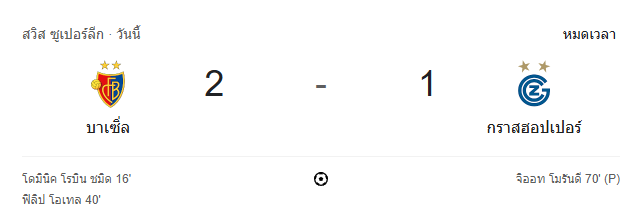 • นาที 95: จบเกม! บาเซิ่ลเปิดบ้านเฉือนชนะกราสฮ็อปเปอร์ 2-1 ในเกมที่มีครบทุกอารมณ์ ทั้งความมันส์ ความตึงเครียด และจังหวะเฉียบขาด
